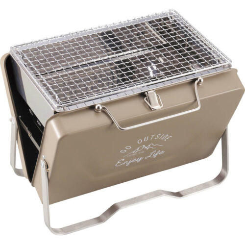 ソロキャンプやお花見に最適な卓上コンパクトグリル。収納時は持ち運びしやすいトランク型になります。